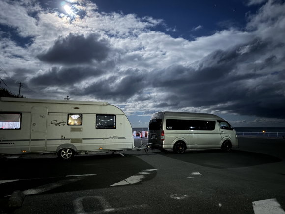 この駐車場、夜遅くなると 釣りの人が少しいるだけで静かでした。(この日は、、、ですが)