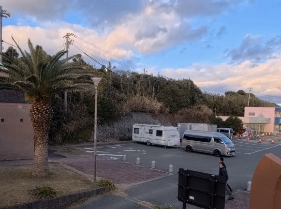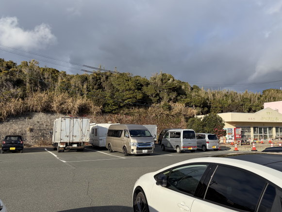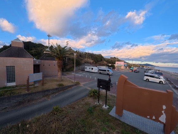 で、16:30頃に駐車場に戻ると、理想の止め場所が空いていたので、そこで車中泊をすることに決定!