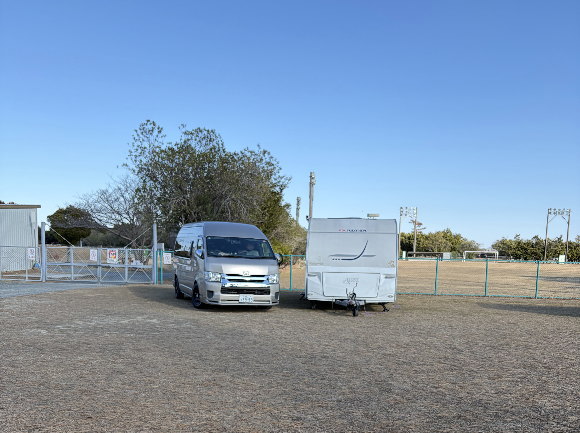 このペットサイトは10m×10mで、我が家のトレーラーとハイエースを入れてもテントを張れそうな広さでした。